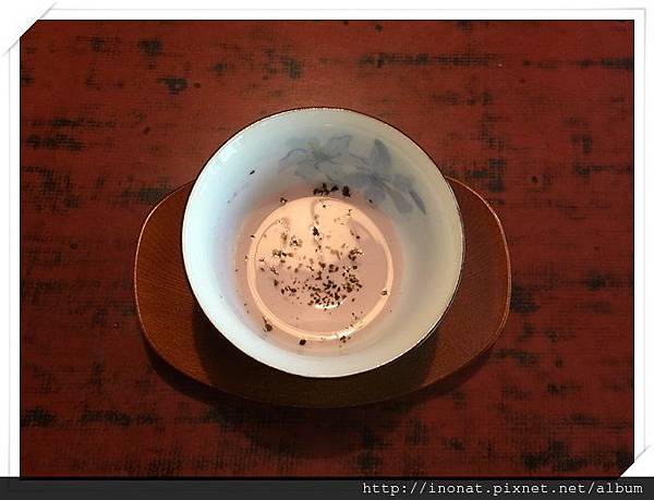 在送餐前會先上一杯紫蘇茶