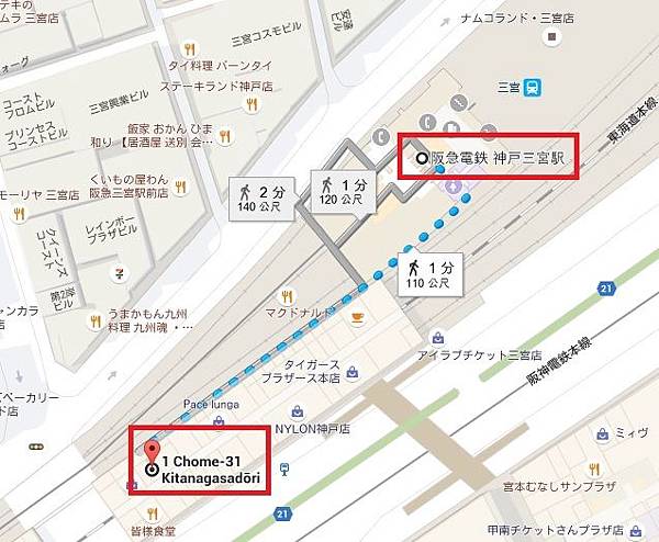 搭阪急電鐵到三宮站,西口一出站就到