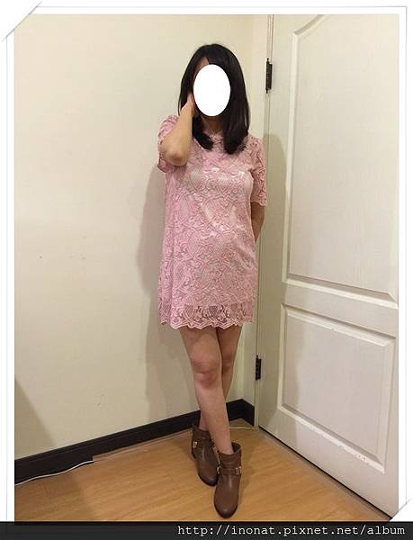 MIHARA Mirror Mirror 韓國 春季巴黎縷空花版粉系全蕾絲洋裝-實穿照
