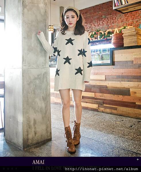 8.amai酷勁女孩風綁帶中筒軍靴: