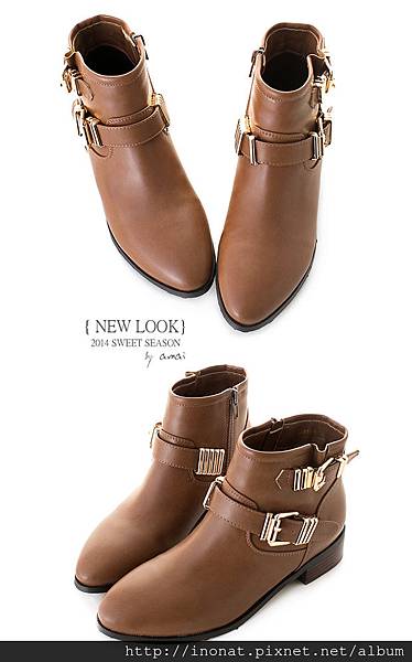 經典皮帶金屬釦飾造型短靴 杏 41- 賣家照